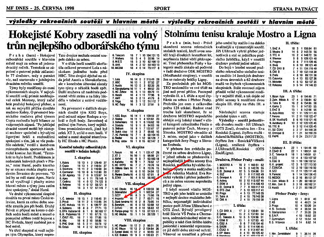 Dám jsem zajímavý věci z našeho působení jak v Rekreačním hokeji tak i následně v PLLH